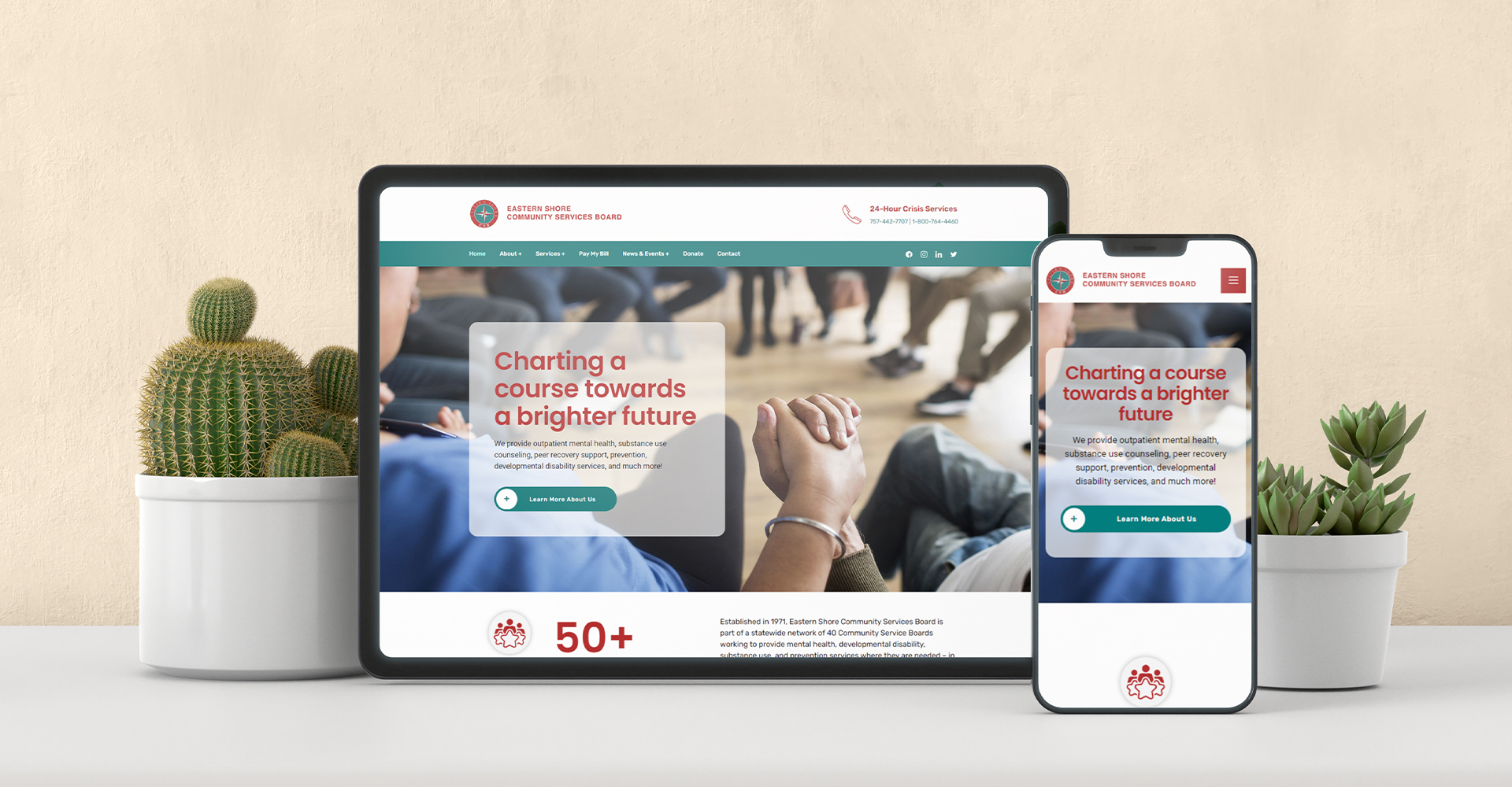 For over 50 years, Eastern Shore Community Services Board (CSB) has supported residents of Accomack and Northampton counties with essential services in mental health, substance use, and developmental disabilities. But their outdated website was failing the very community it aimed to serve. A cluttered layout, poor navigation, and a lack of mobile optimization made it difficult for users—especially younger audiences—to access services. As a government agency, the CSB also needed to meet auditor expectations with up-to-date, clearly presented service listings.