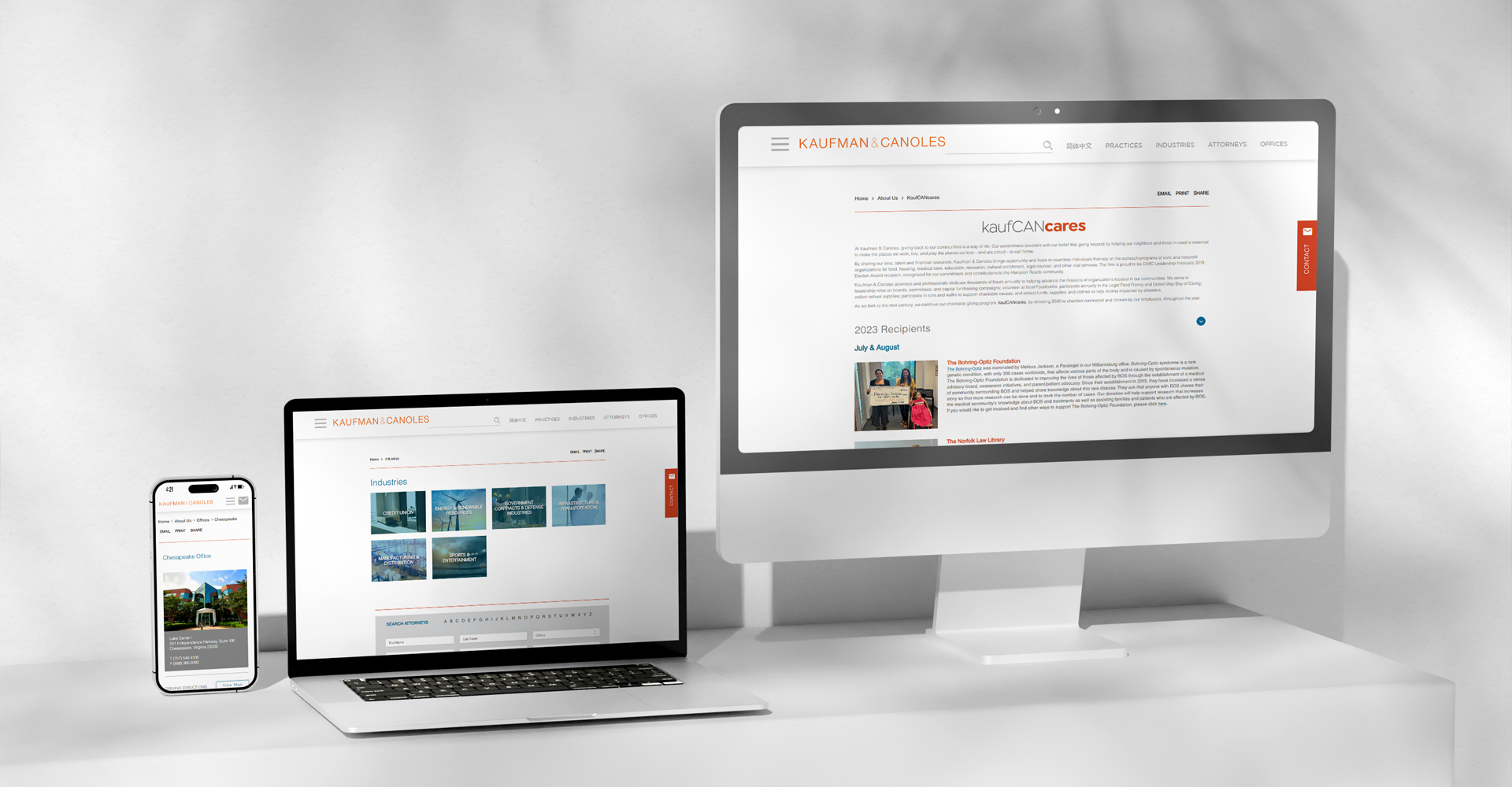 Kaufman & Canoles, a prominent Virginia law firm with more than 120 attorneys, relied on an outdated Plone CMS. Slow page loads, display glitches, and a cumbersome update process left marketing staff dependent on developers for every edit. When the previous host could no longer maintain the site, the firm needed a partner who could stabilize performance immediately and chart a path to a modern rebuild.